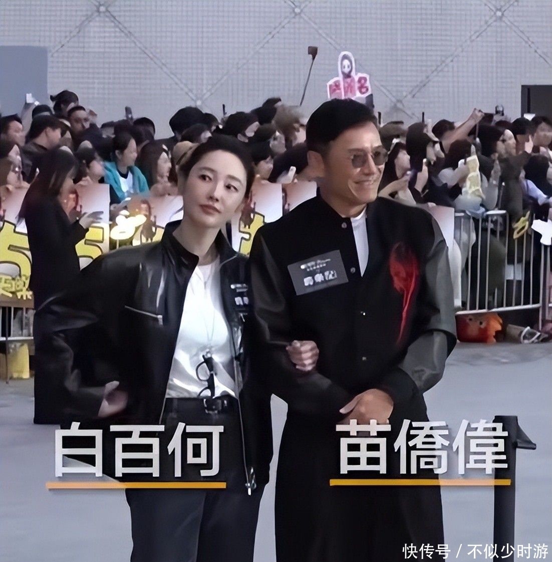 白百何随后出场,一身酷飒装扮试图展现个性,笑容甜美却稍显刻意,拍照时常摆出45度侧身姿势,几次尝试插兜耍帅均未能成功。